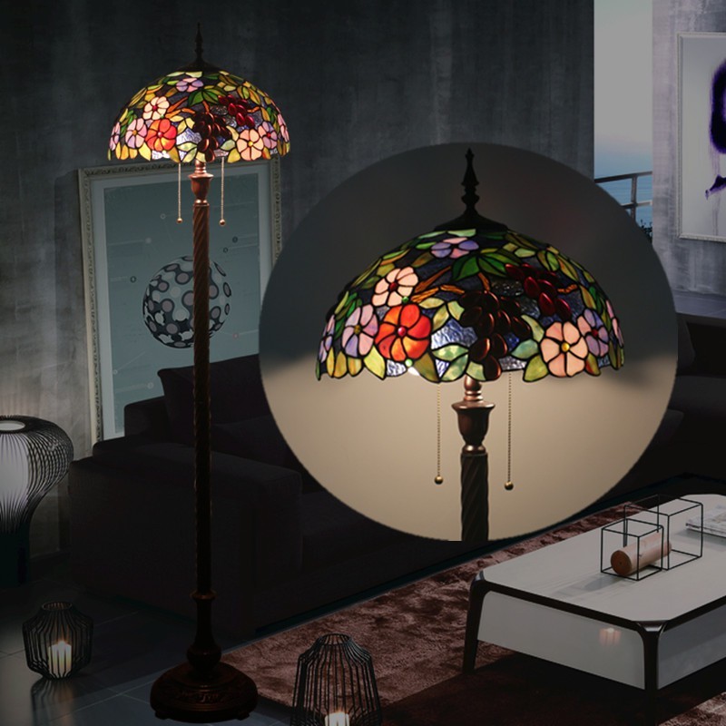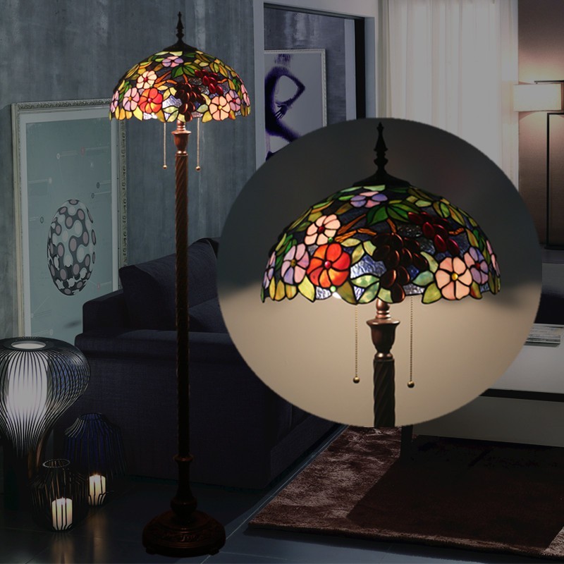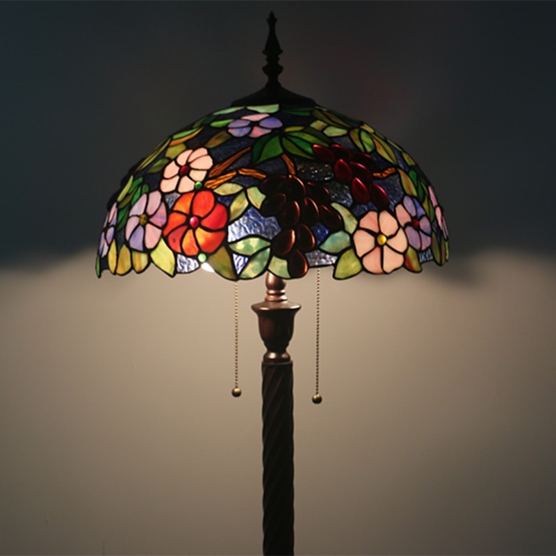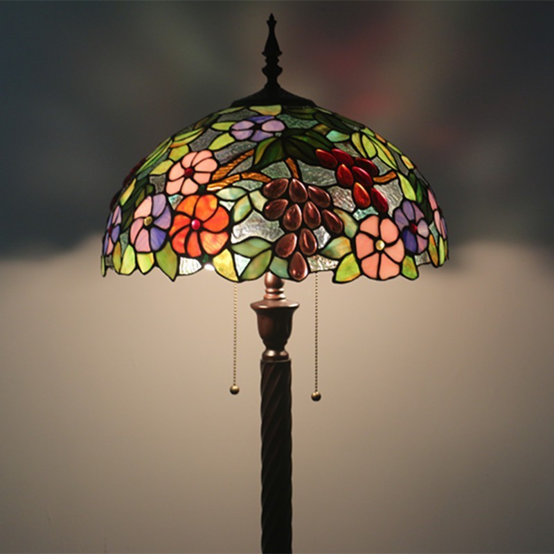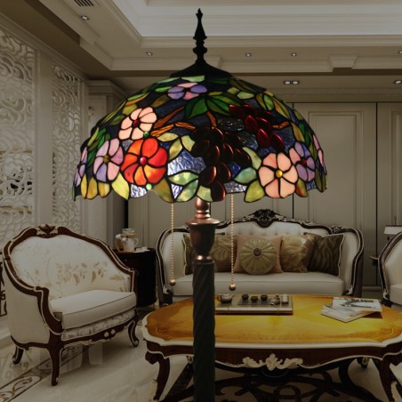 40 cm Eiropas vitrāžas vīnogu stila Tiffany stāvlampa