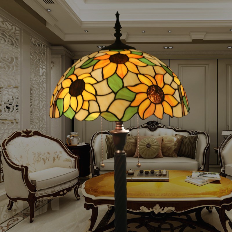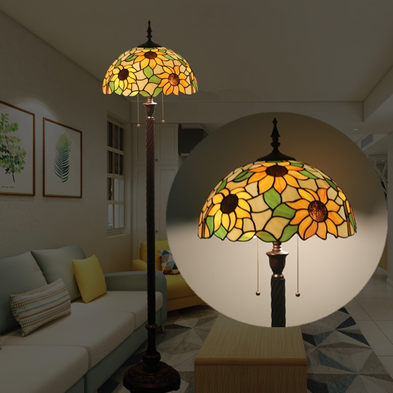 40 cm Eiropas retro vitrāžas Tiffany stāvlampa