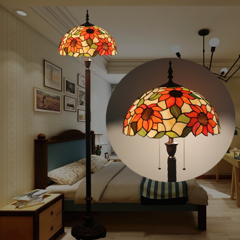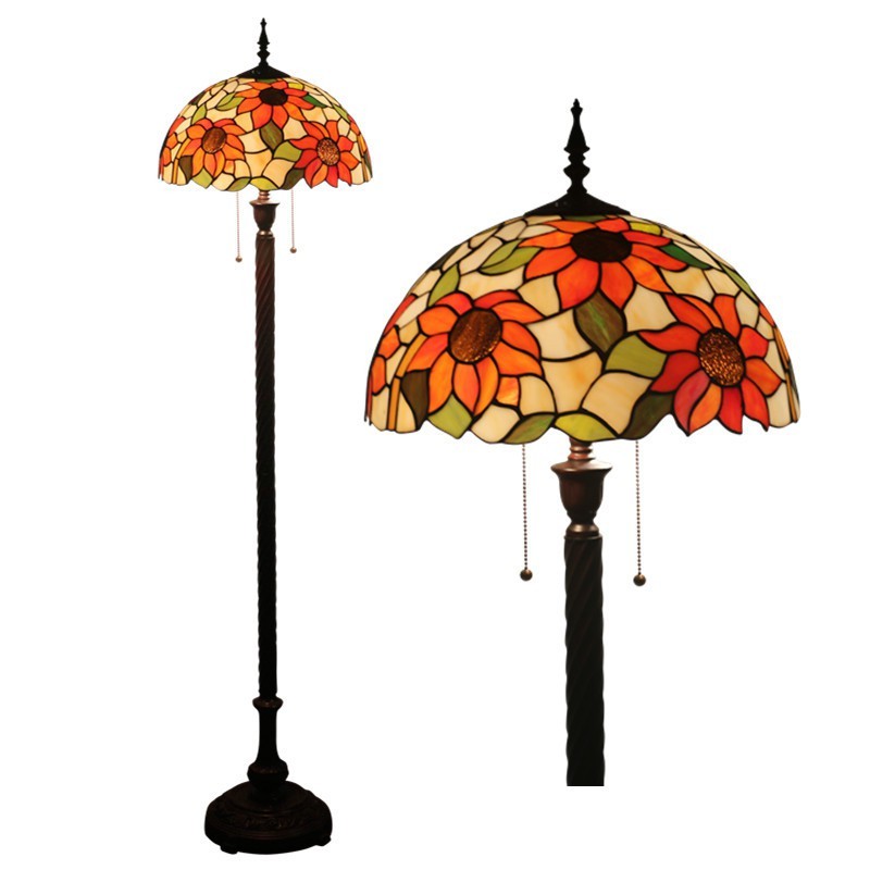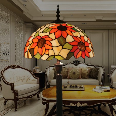 40 cm Retro vitrāžas saulespuķu stila Tiffany stāvlampa