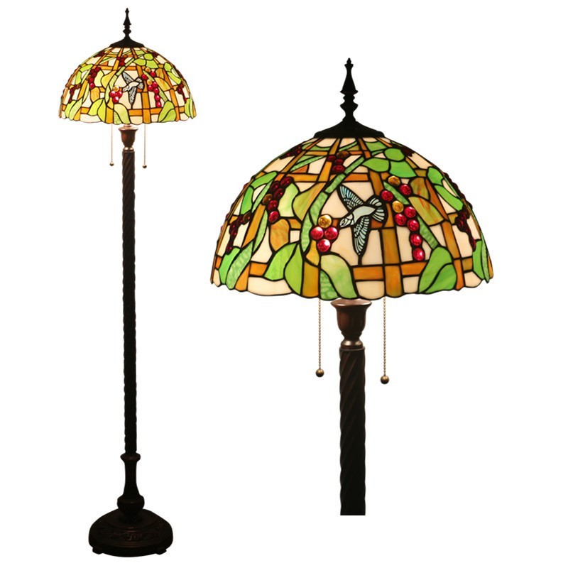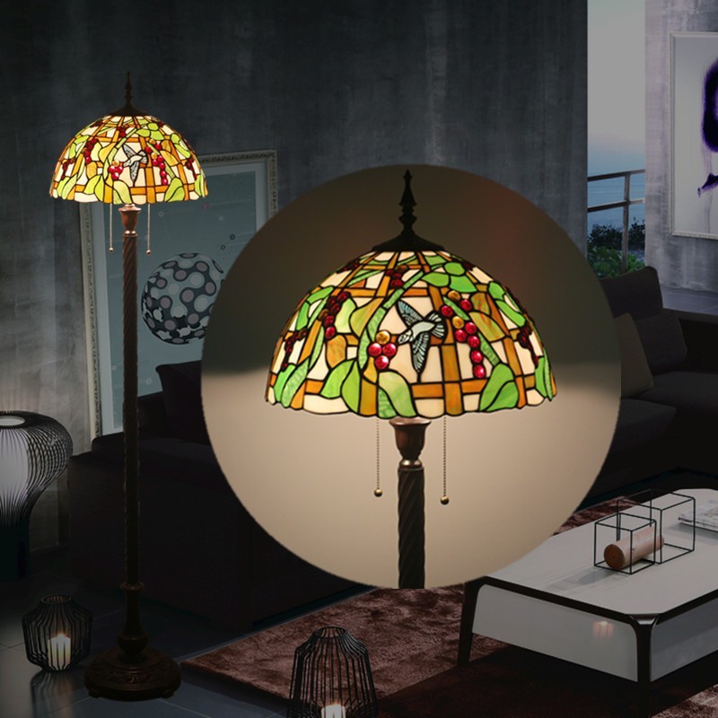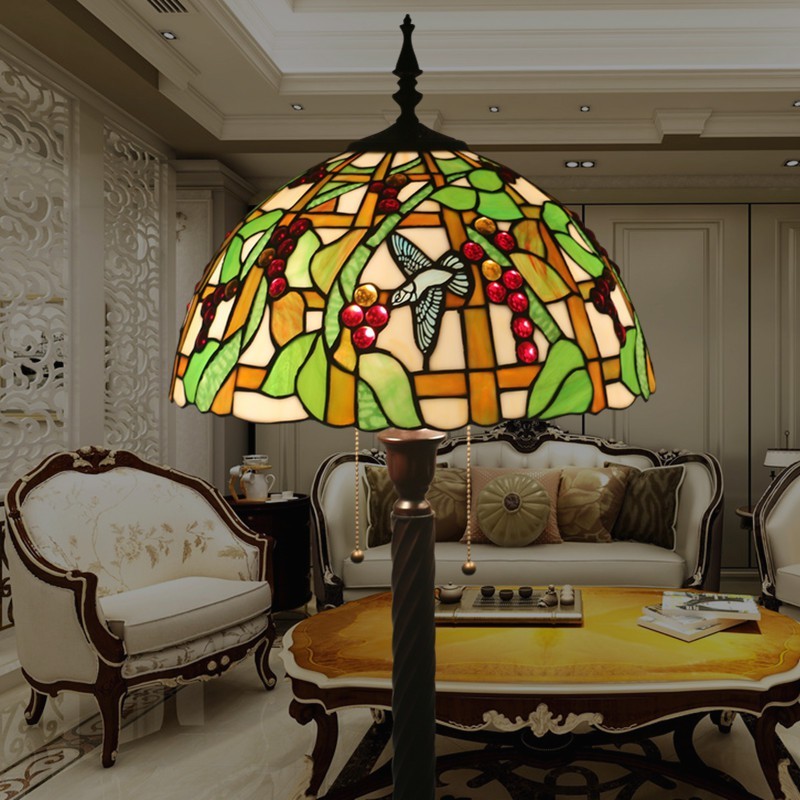 40 cm Eiropas vitrāžas kolibri stila vīnogu stila Tiffany stāvlampa