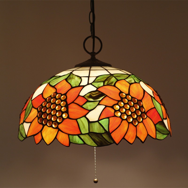 Saulespuķu 40 cm Eiropas vitrāža Tiffany piekarināmā gaisma