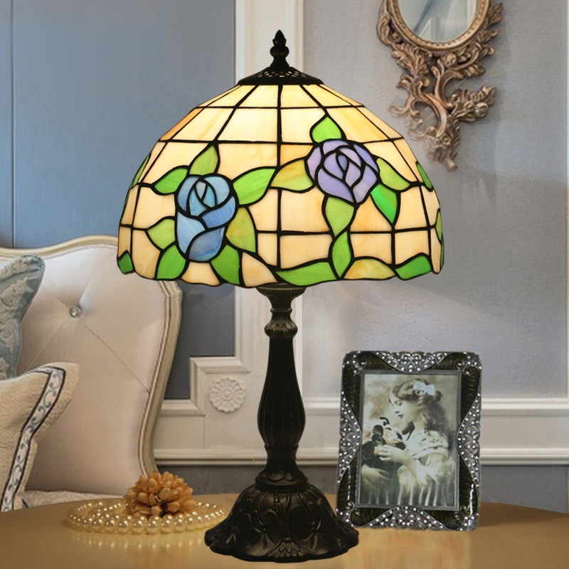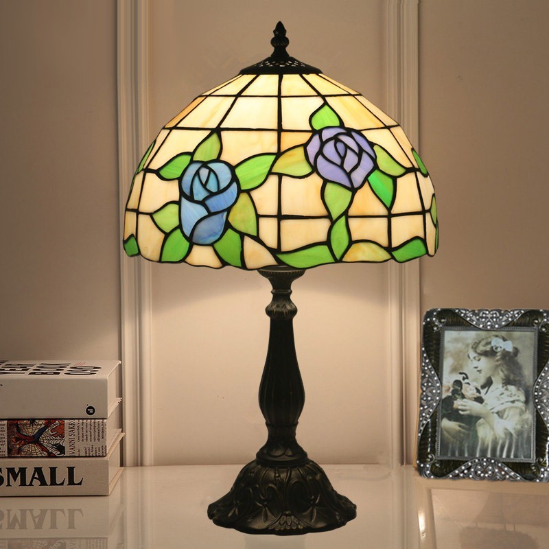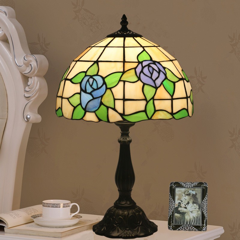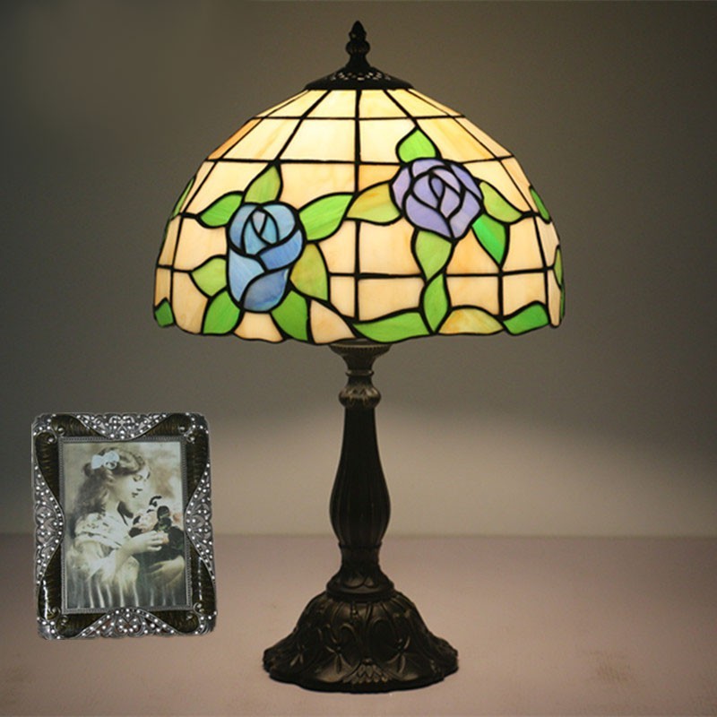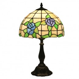 30 cm Eiropas vitrāžas rožu stila Tiffany galda lampa
