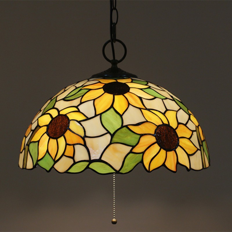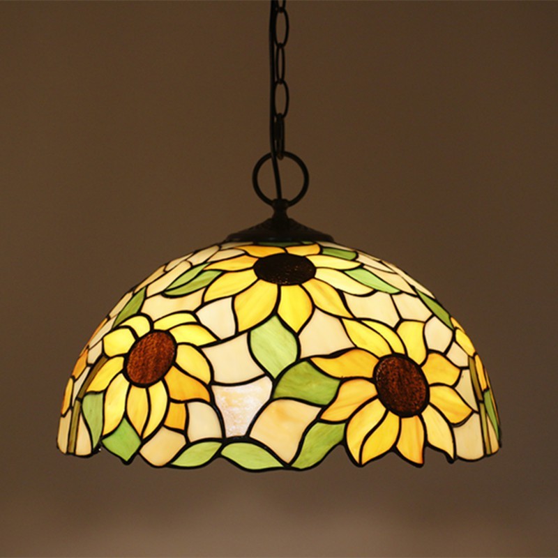 Saulespuķu 40 cm Eiropas vitrāža Tiffany piekarināmā gaisma