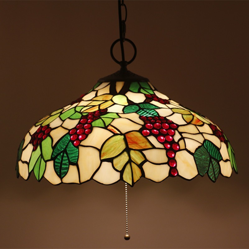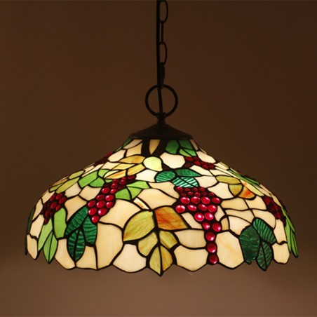 Vīnogu 40 cm Eiropas vitrāžas Tiffany kulons gaisma