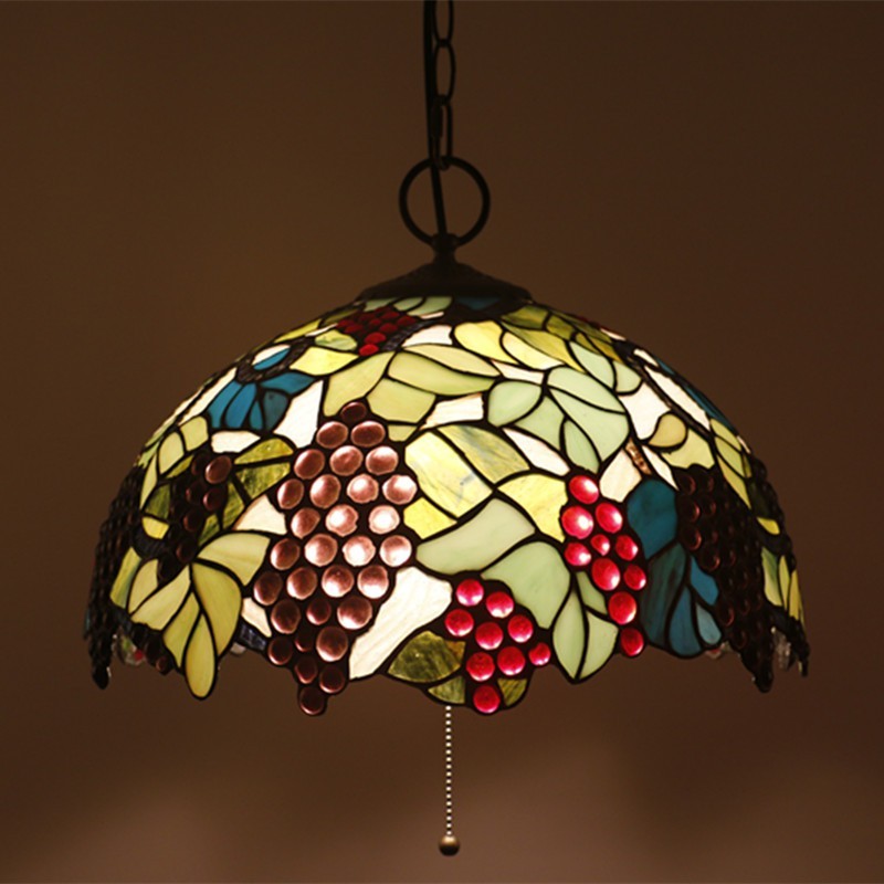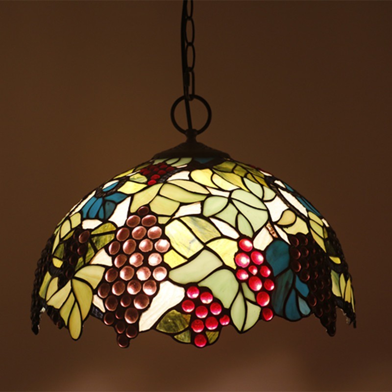 Vīnogu 40 cm Eiropas vitrāžas Tiffany kulons gaisma