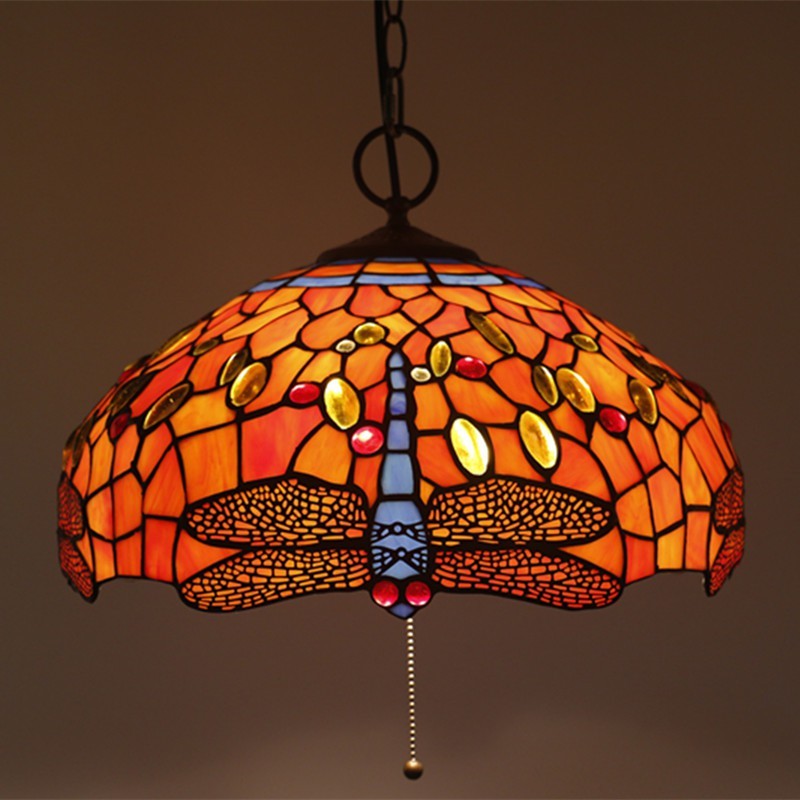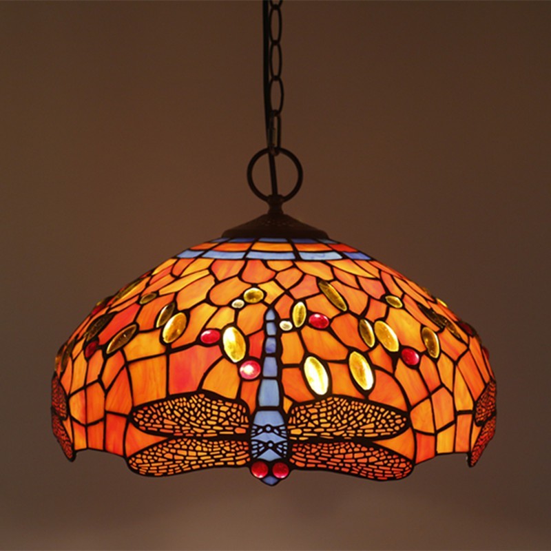 40 cm Eiropas vitrāžas spāru stila Tiffany piekarināmais gaismeklis