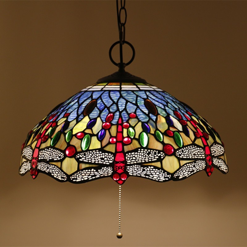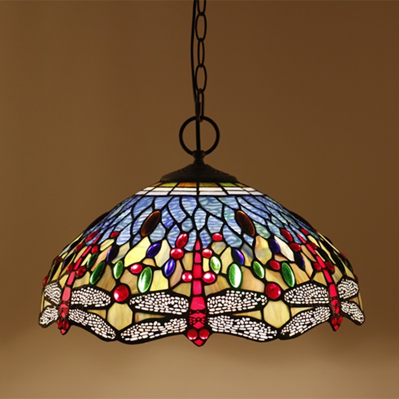 40 cm Eiropas vitrāžas spāru stila Tiffany piekarināmais gaismeklis