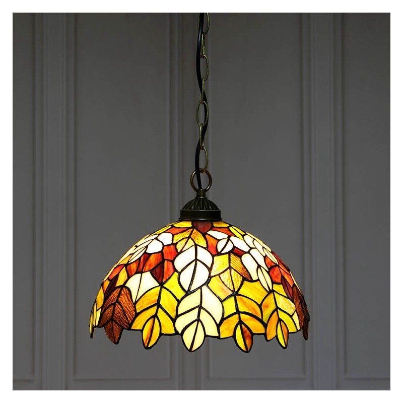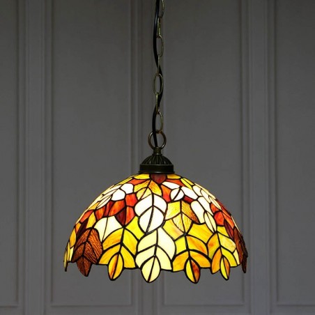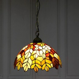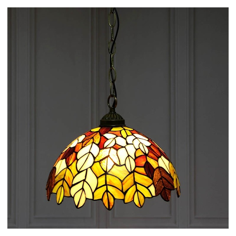 Tiffany stila piekarināmā piekaramā lampa, vitrāžas lapu griestu lampa, 12 collas