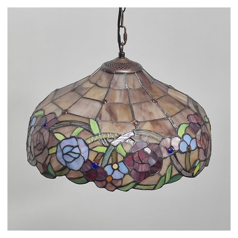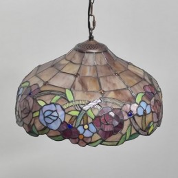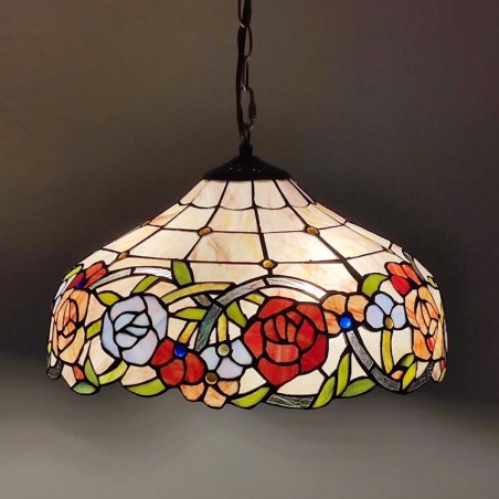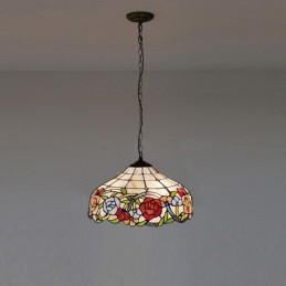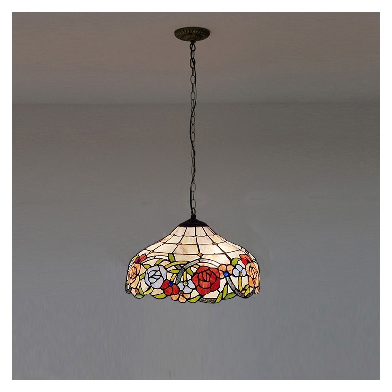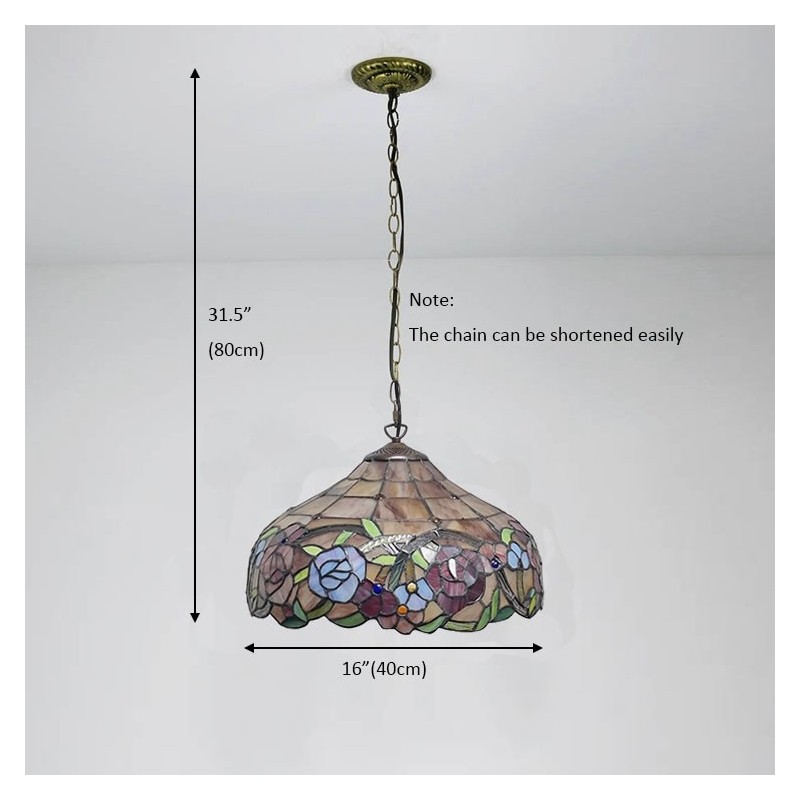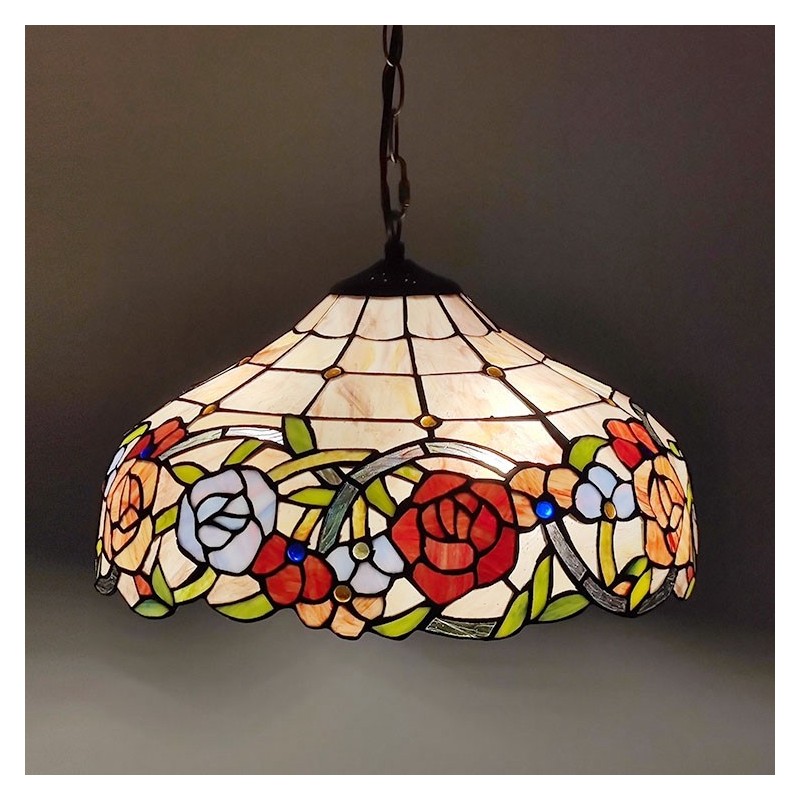 16 collu Tiffany stila vitrāžu piekarināmā lampa unikāls rožu vitrāžu griestu apgaismojums