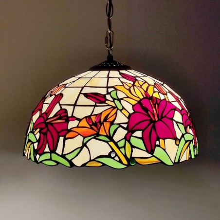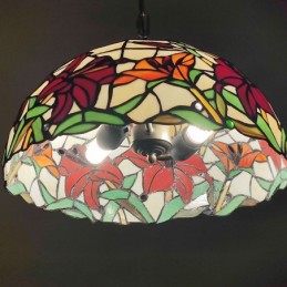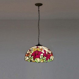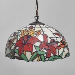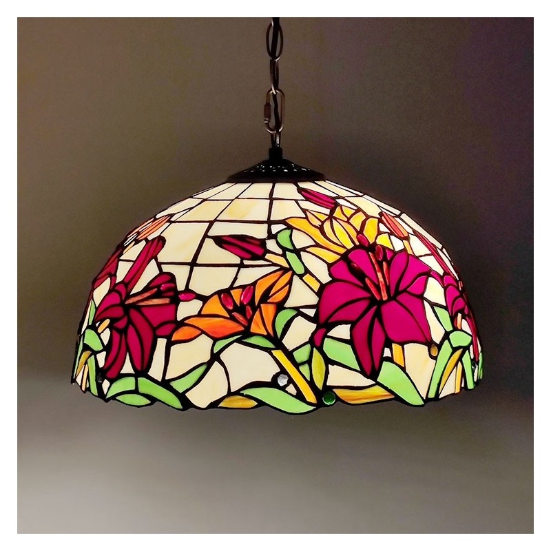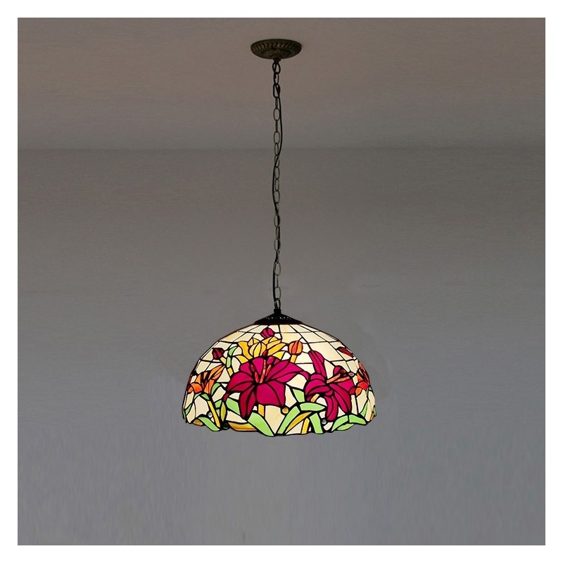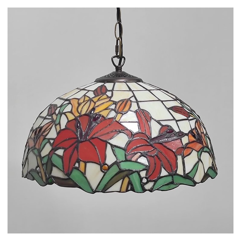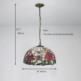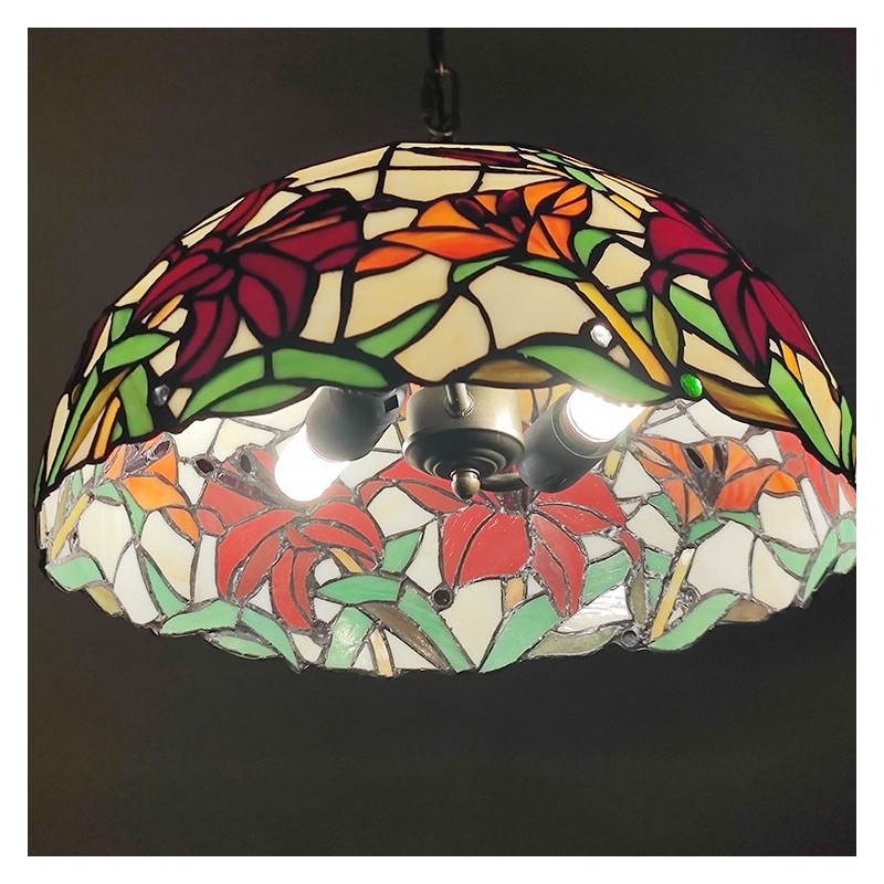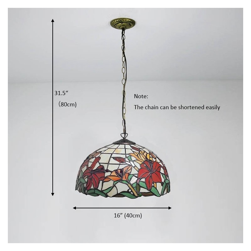 16 collu sarkana ziedu Tiffany stila vitrāžu piekārta lampa Butterfly Rose vitrāžas griestu lampa