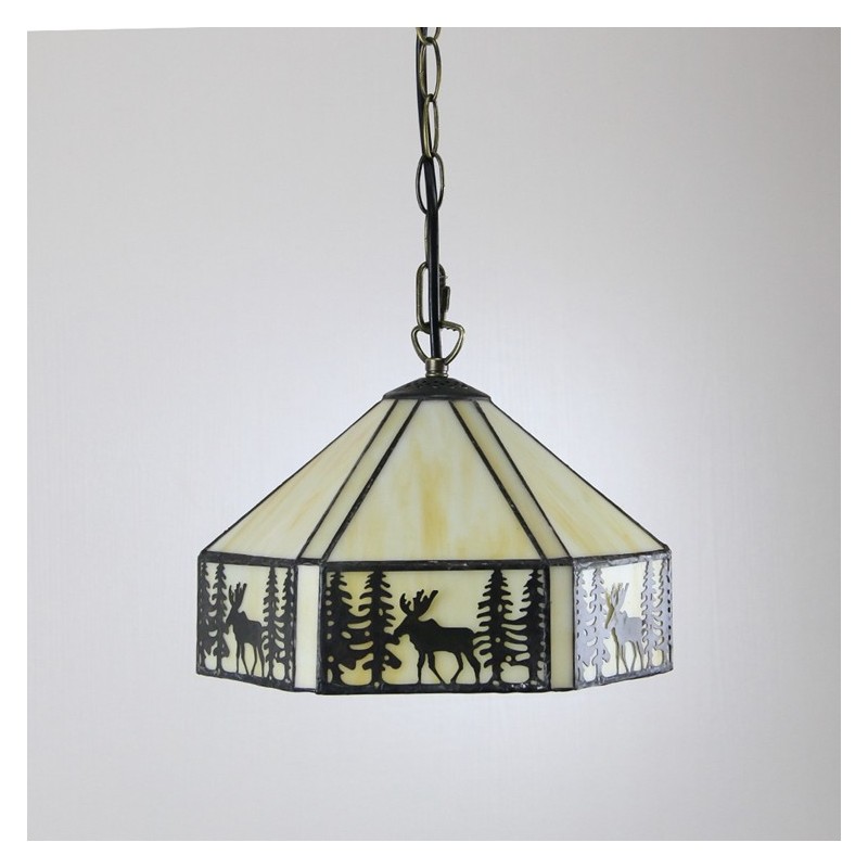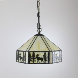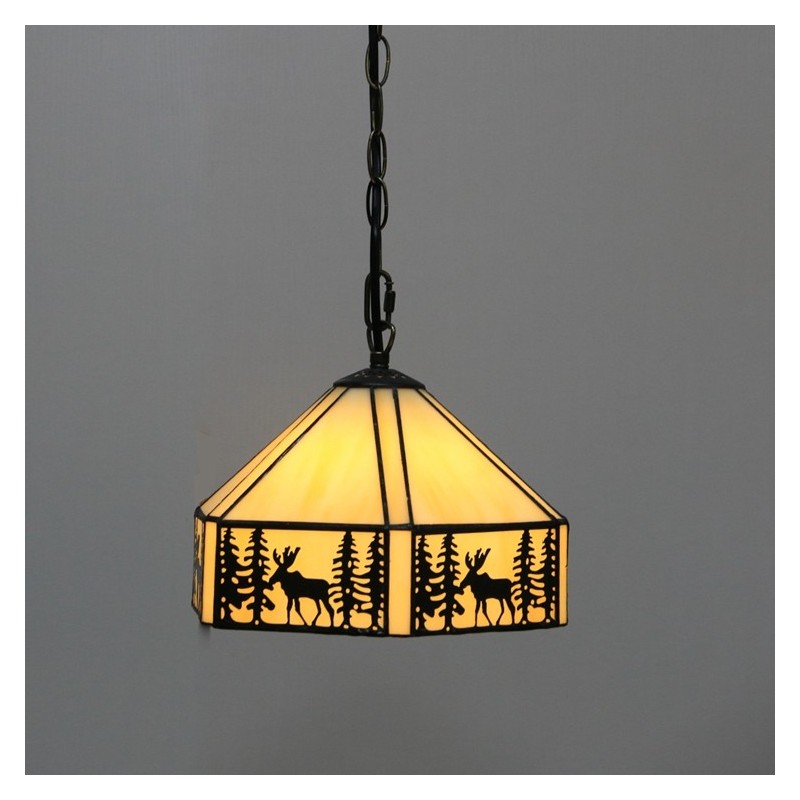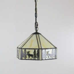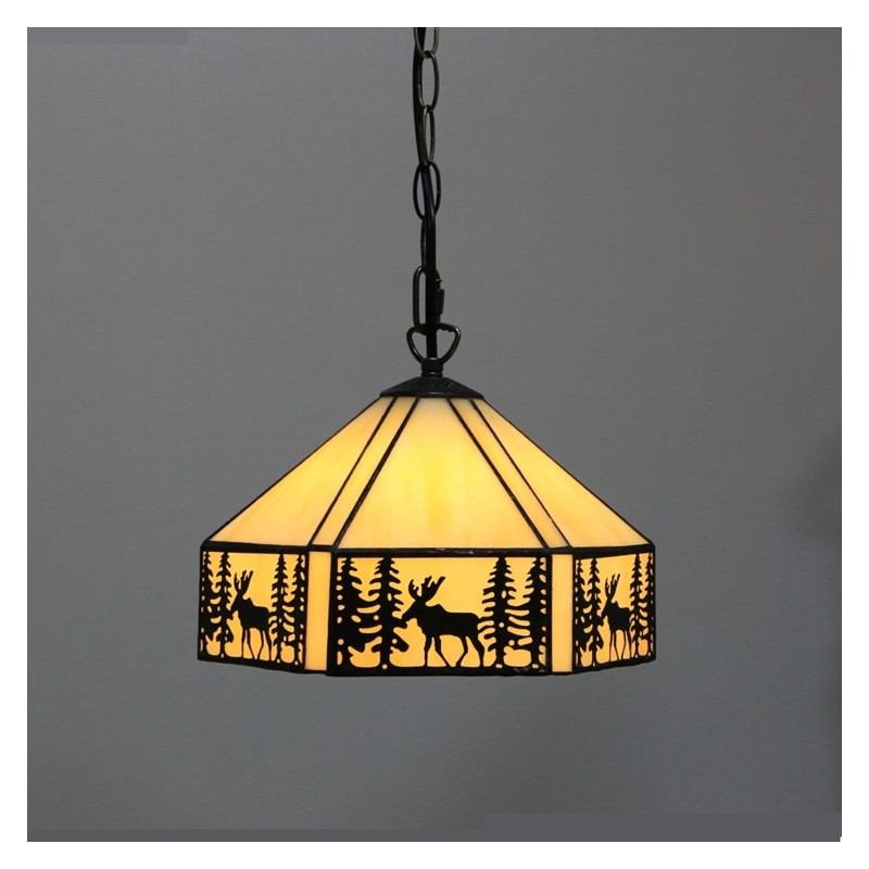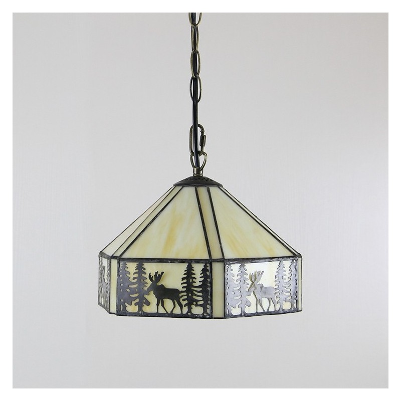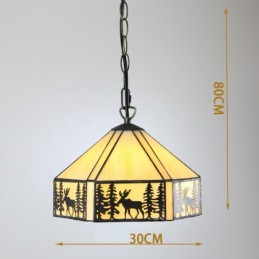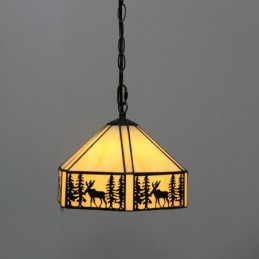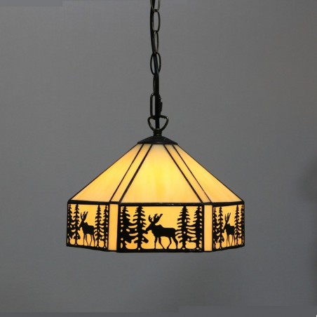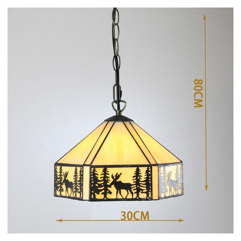 10 collu Tiffany stila piekaramā lampa, vintage briedis ar kokiem, vitrāžas abažūrs, griestu piekaramie lukturi
