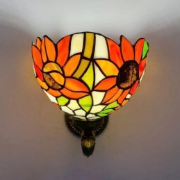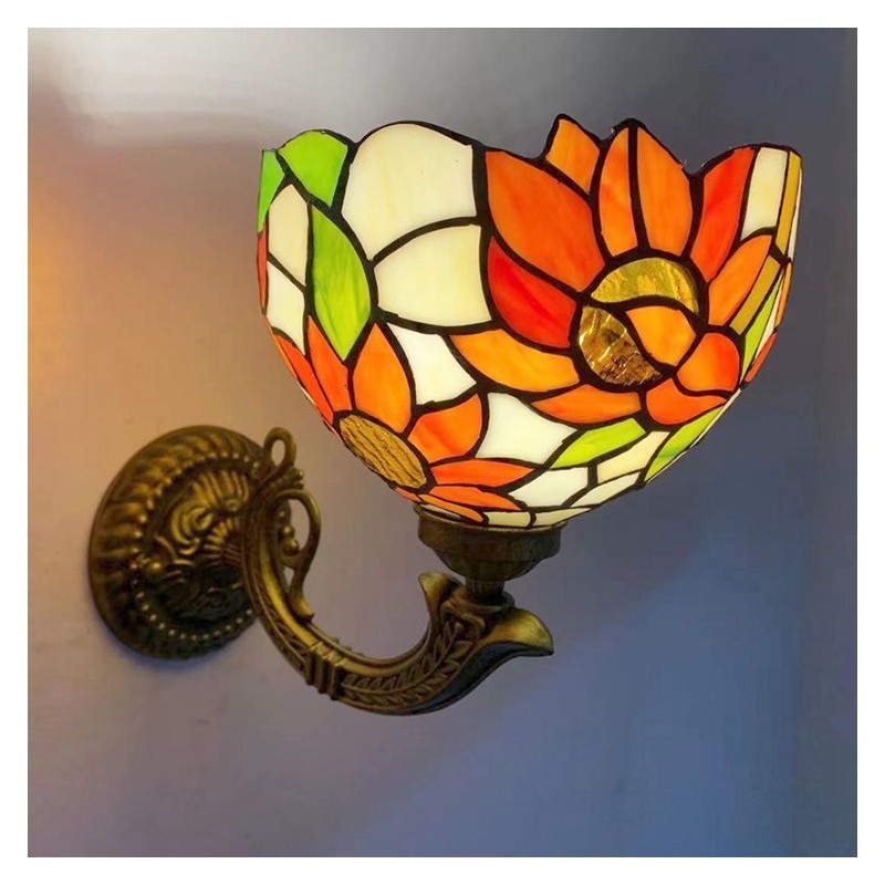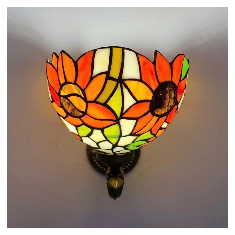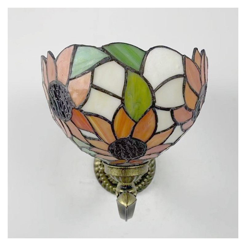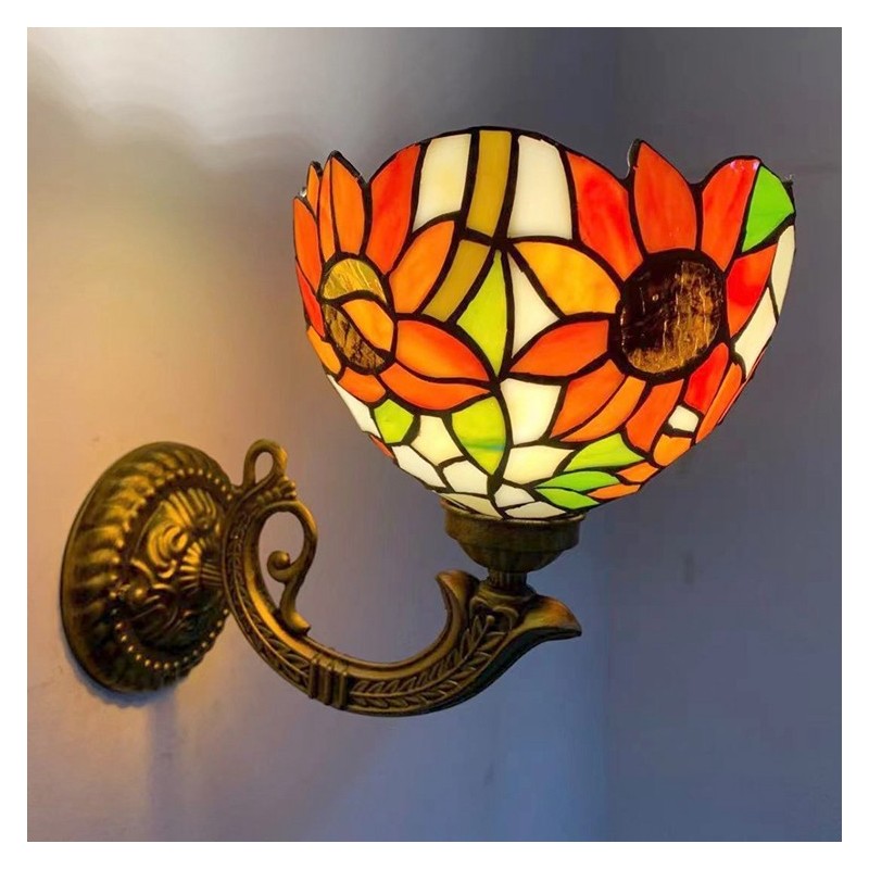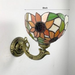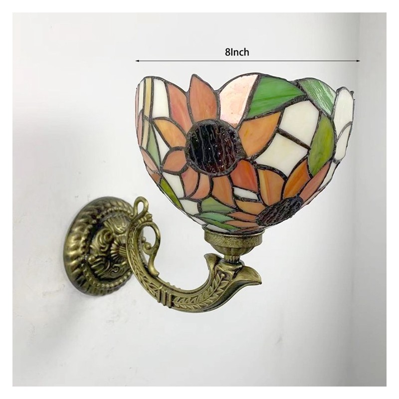 8 collu Tiffany stila sienas lampa, vitrāžas saulespuķu sienas lampas, rokām darinātas dekorācijas, ieplūstošas montāžas gaisma