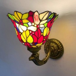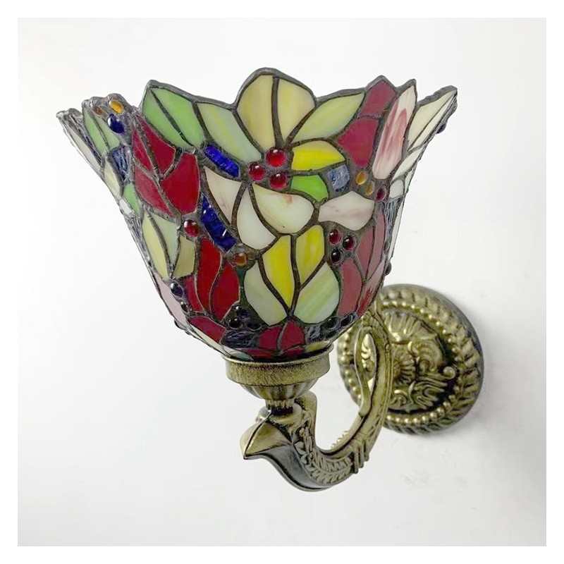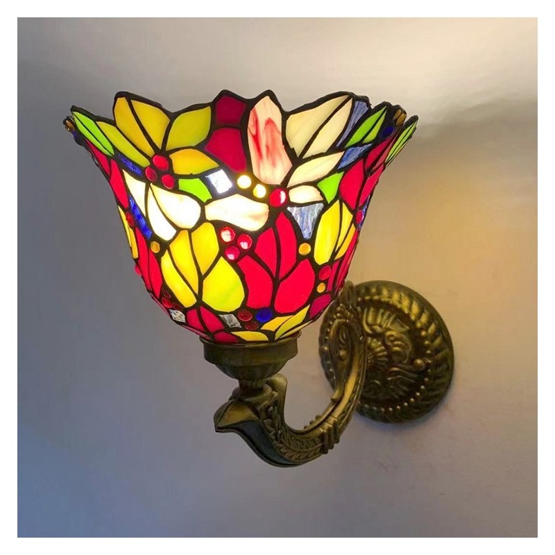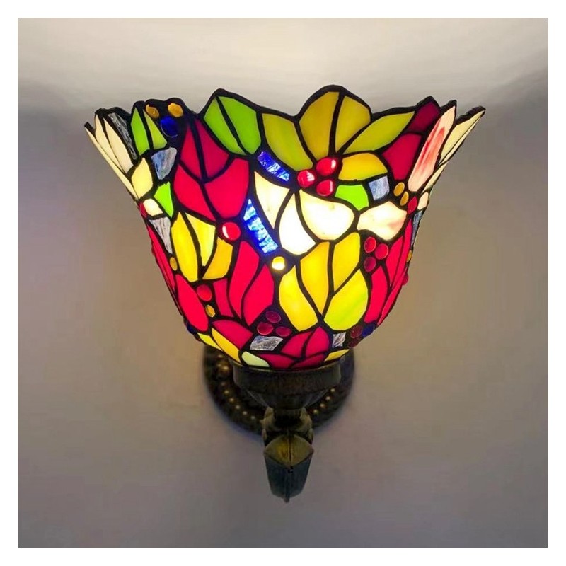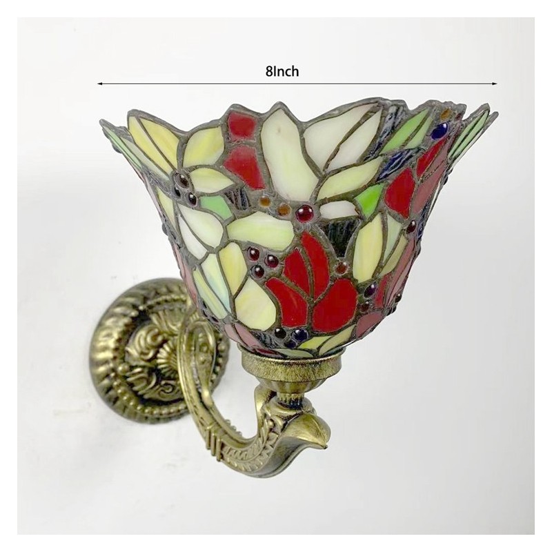 8 collu Tiffany stila sienas lampa, vitrāžas, ziedi, sienas lampas lampas, ar rokām darinātas dekorācijas, iepludināmas LED gaisma