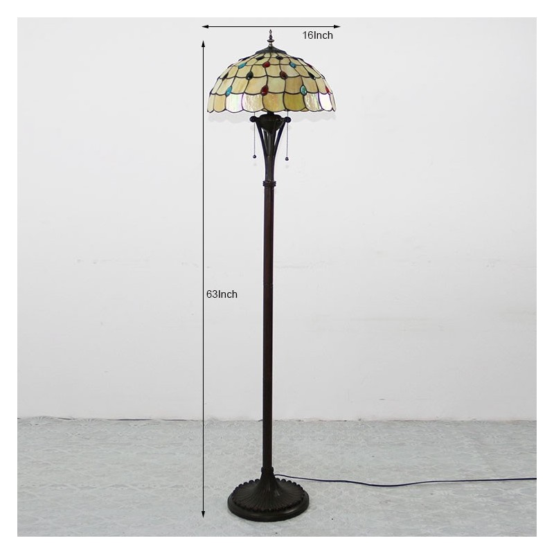 Tiffany stila vitrāžas grīdas lampa ar 16 collu platu rokām darinātu lampas dekoru apgaismojumu