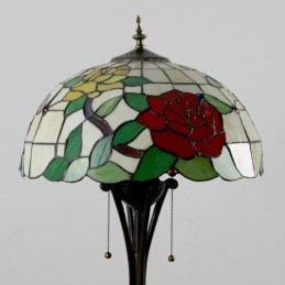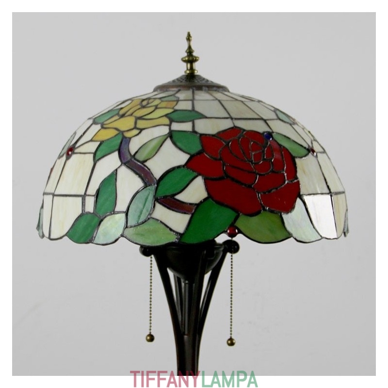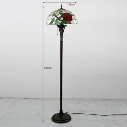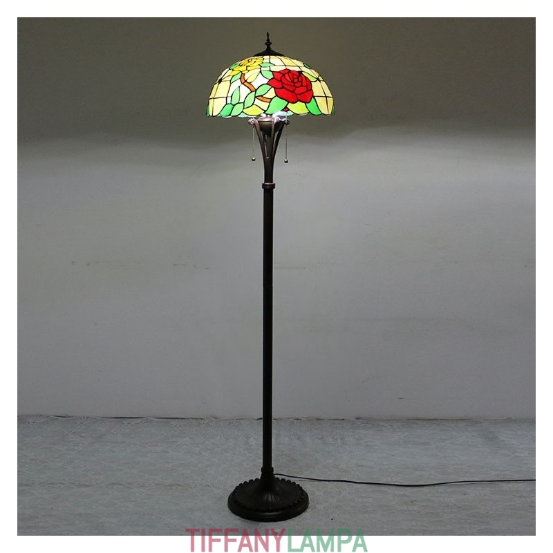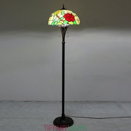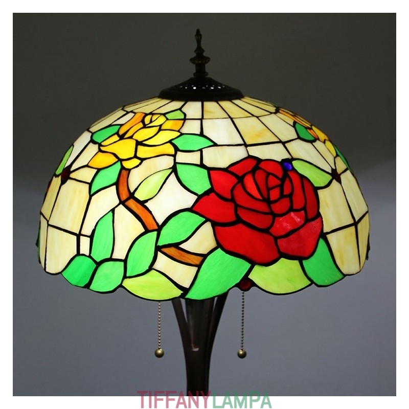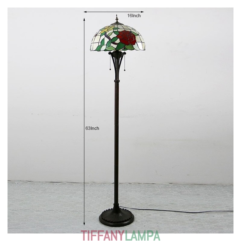 Tiffany stila vitrāžas sarkanās rozes grīdas lampa ar 16 collu platu rokām darinātu lampas abažūru