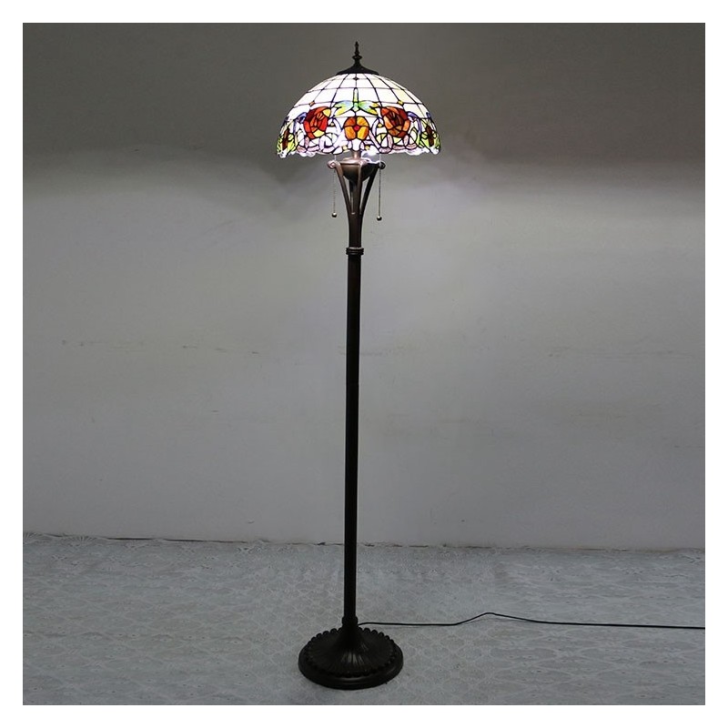 Tiffany stila tītara kulons, vintage amerikāņu vitrāžas kulons gaiši sarkanas rozes raksta lampa