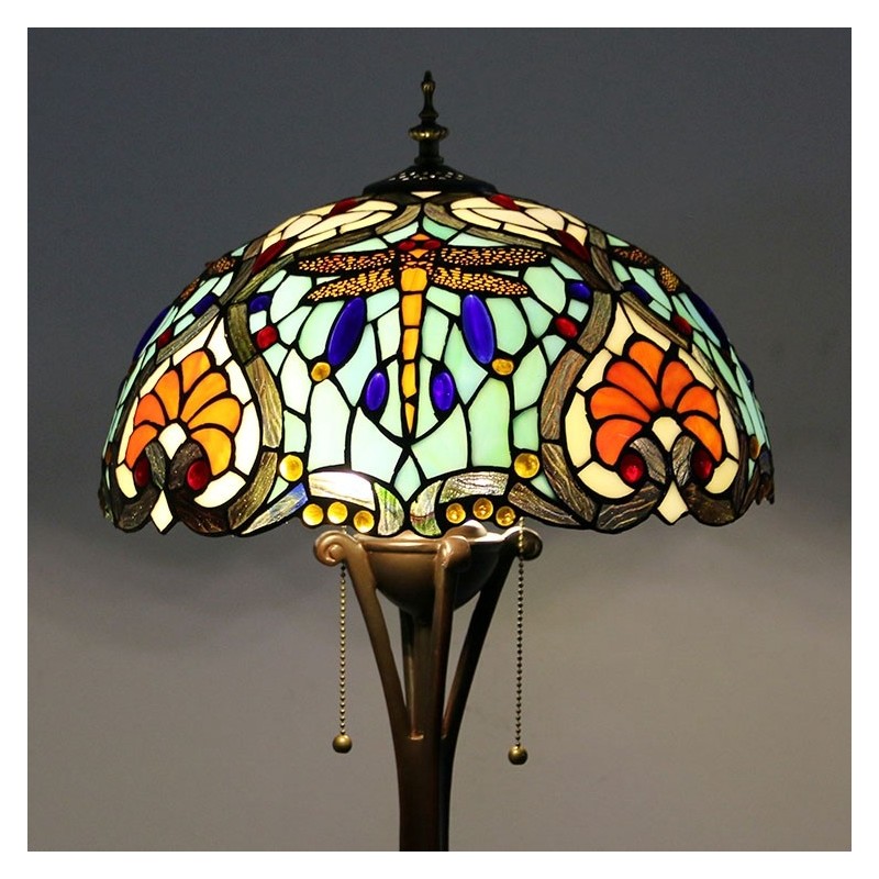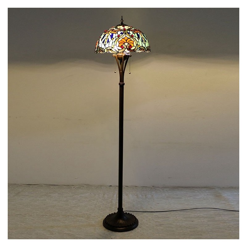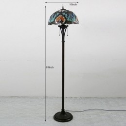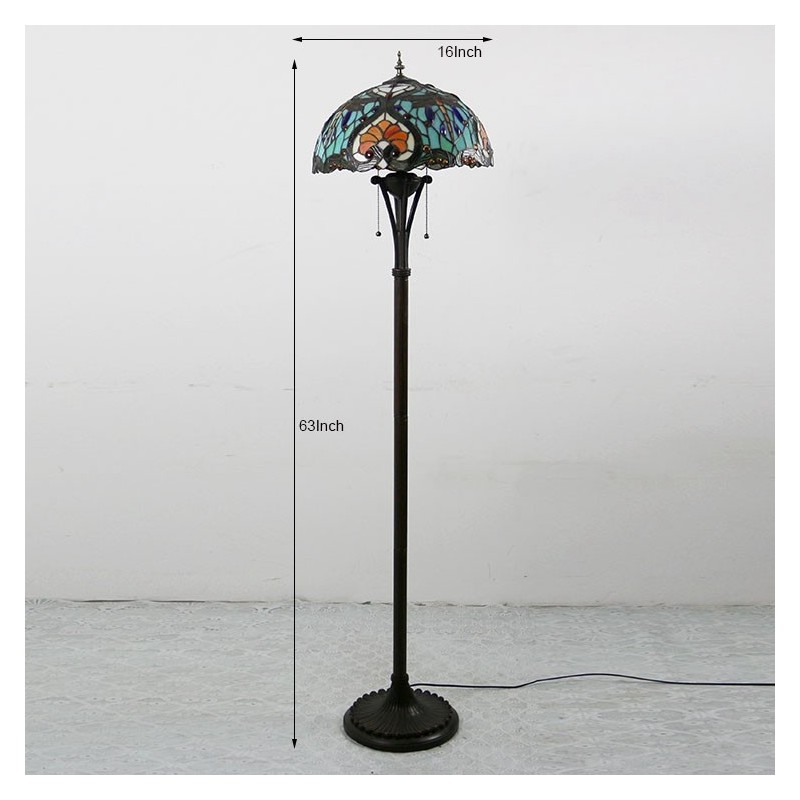 Tiffany stila grīdas lampa W16H64 collu augsta vitrāžas lampa, 2 antīks lasāmais apgaismojums