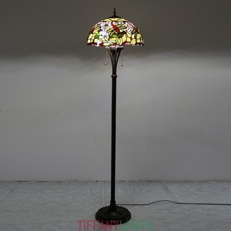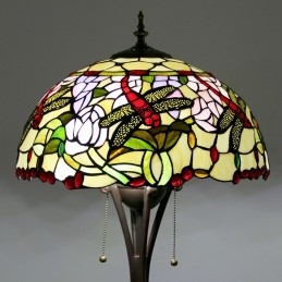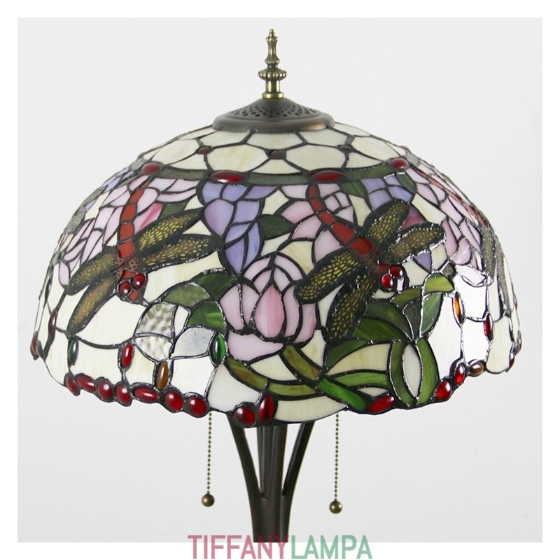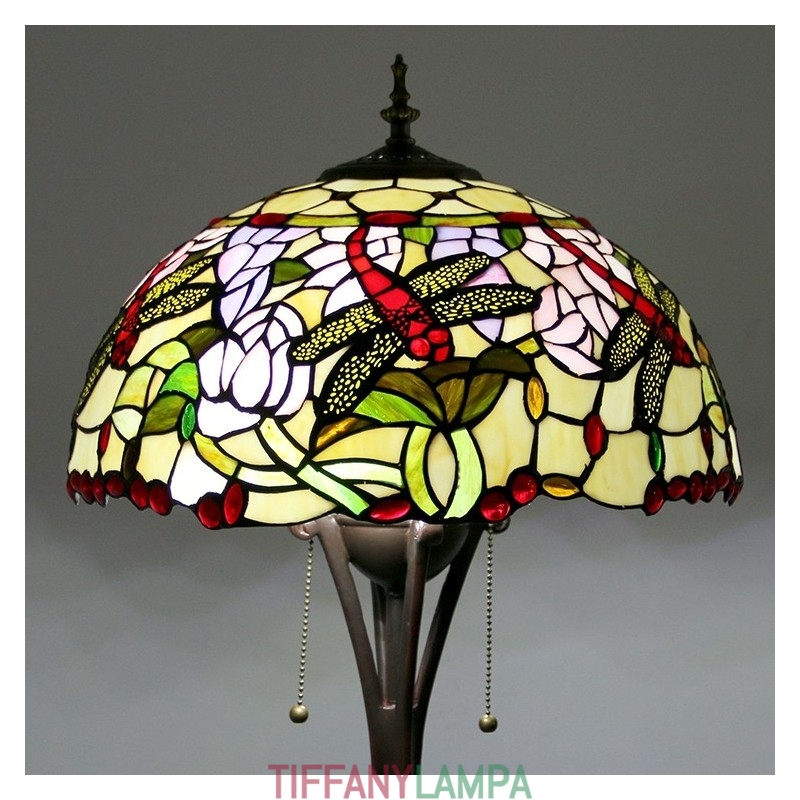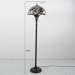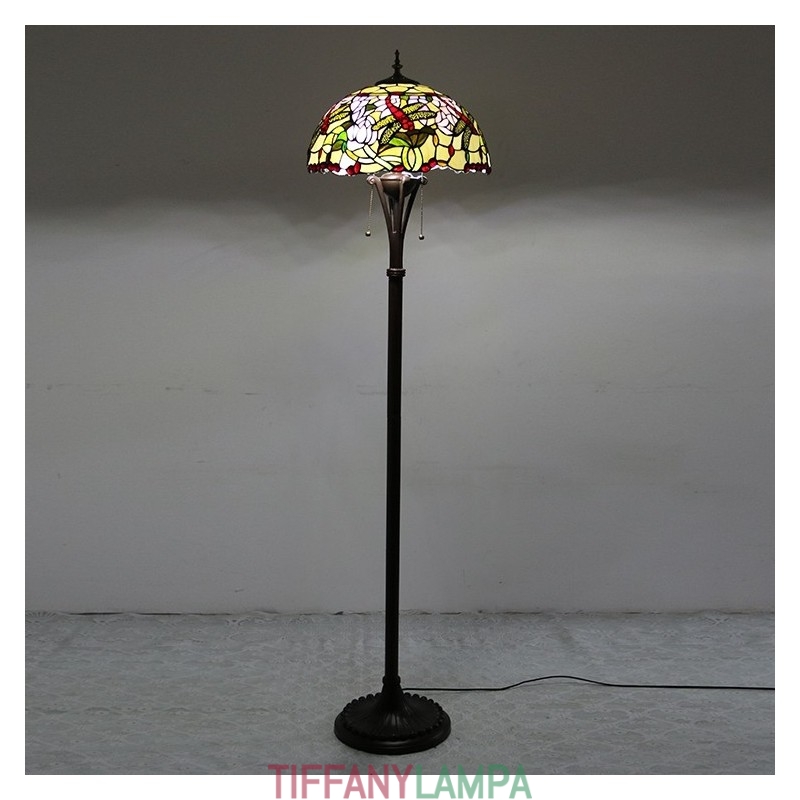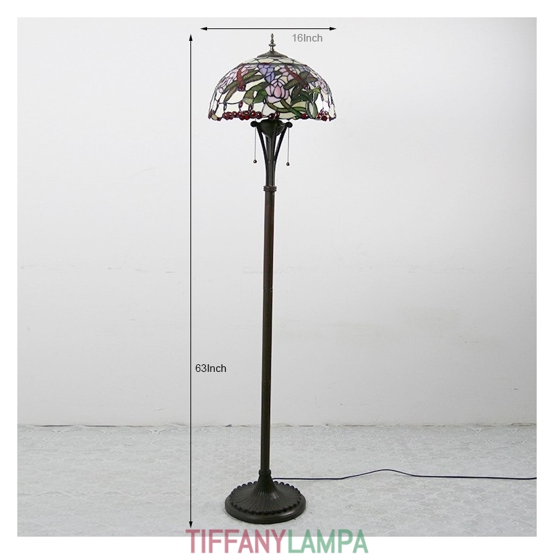 Dragonfly Tiffany stila vitrāžas grīdas lampa ar 16 collu platu rokām darinātu lampas abažūru metāla pamatni
