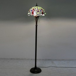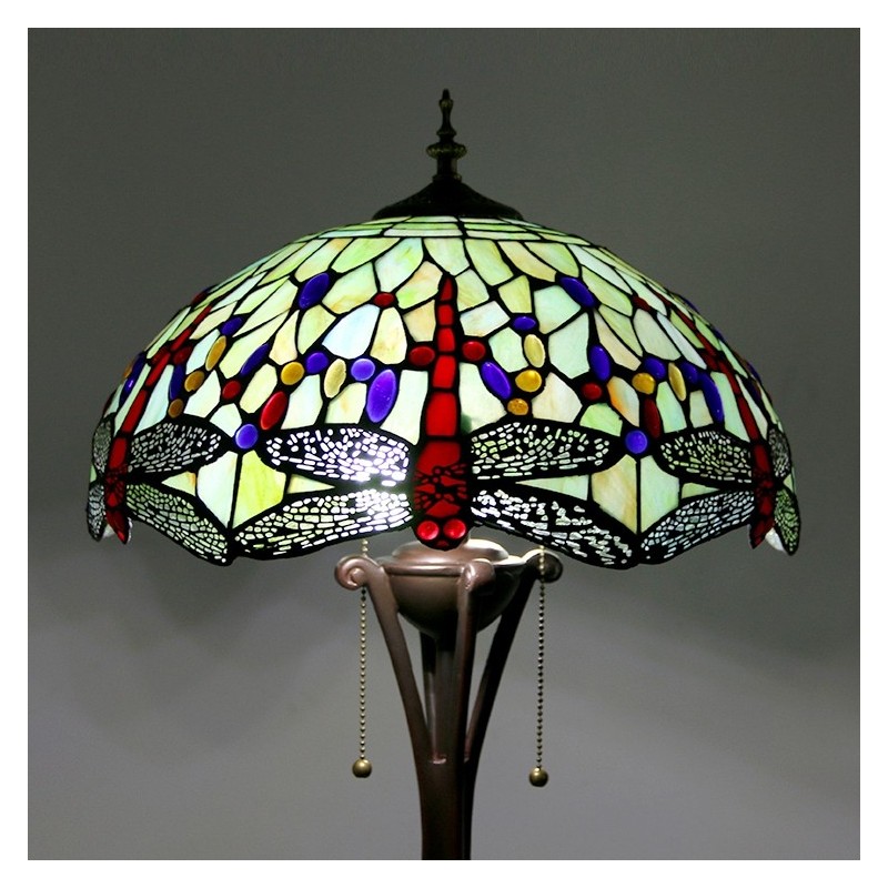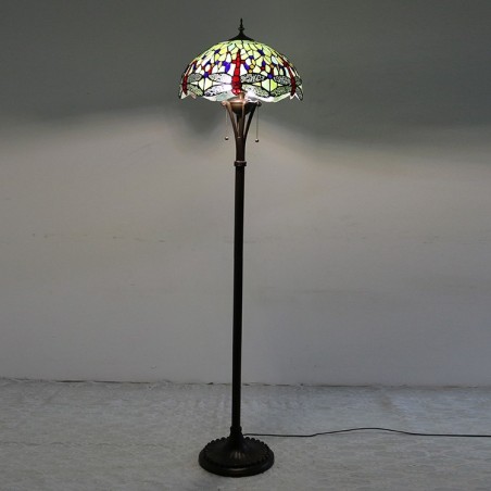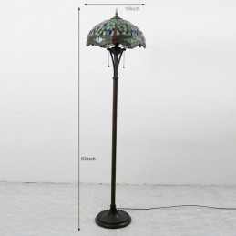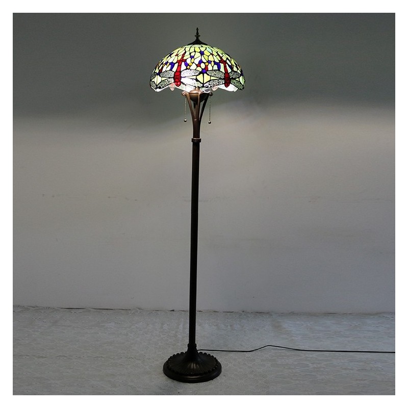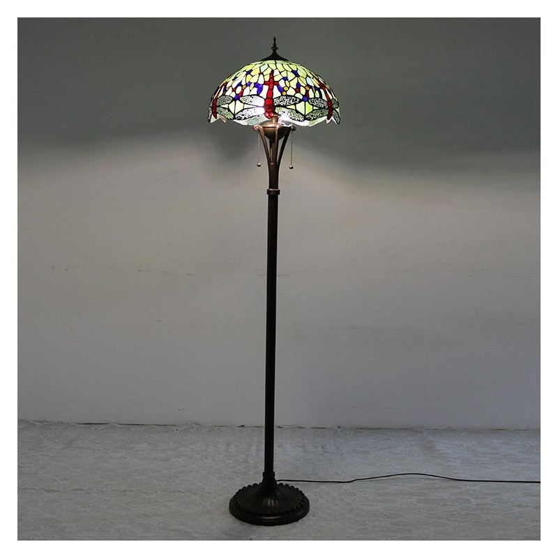 Tiffany stila grīdas lampa, 63 collu augsta vitrāža, sarkana spāres dizaina ēna 2, gaiša antīka pamatne