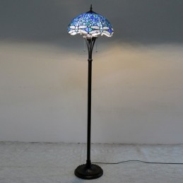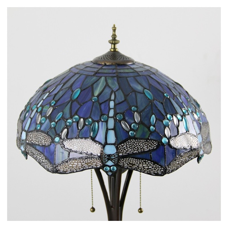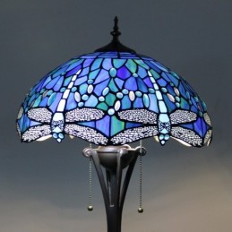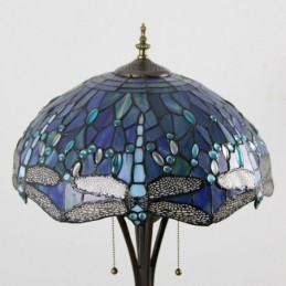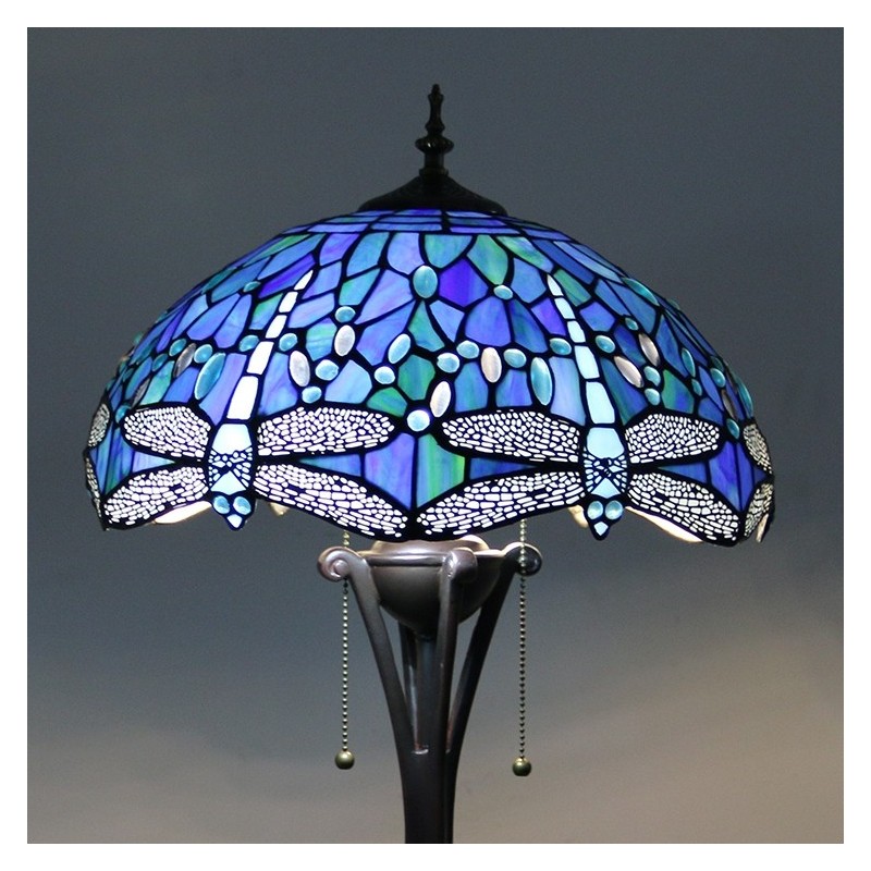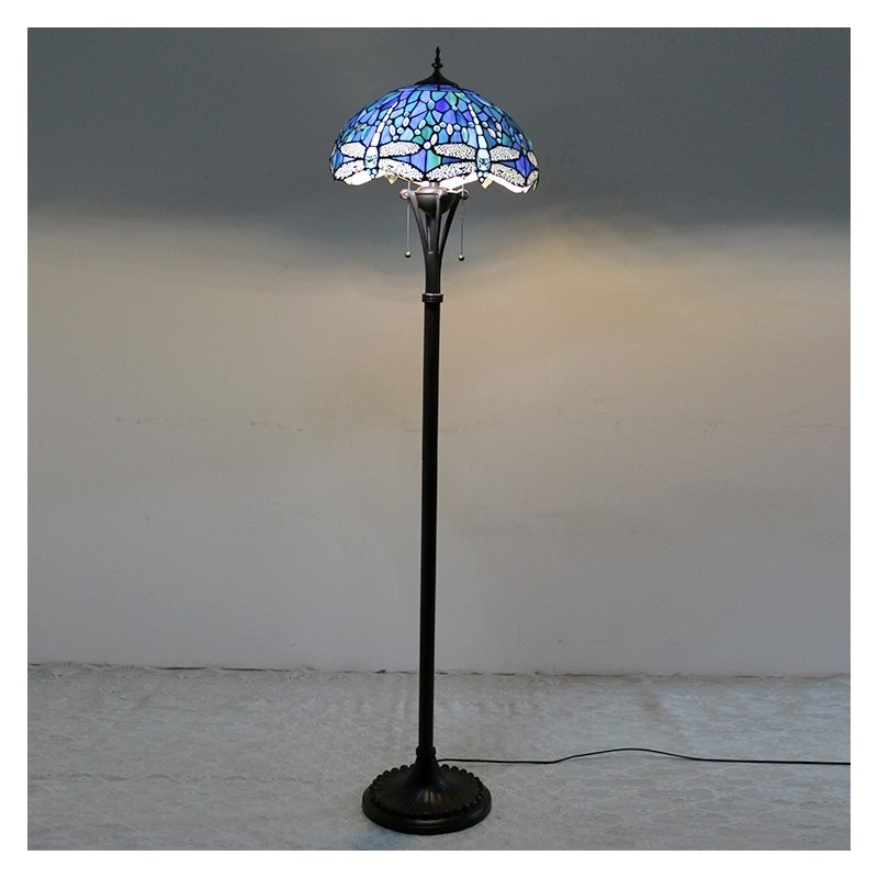 Gaiši zila Dragonfly Tiffany stila vitrāžas grīdas lampa ar 16 collu platu rokām darinātu lampas metāla pamatni