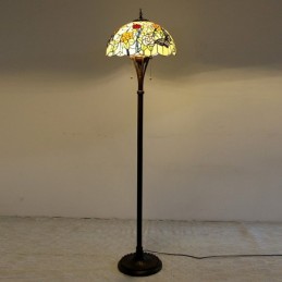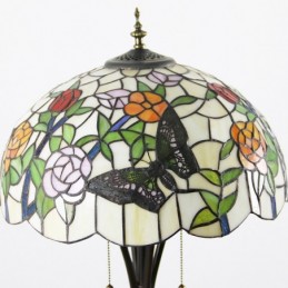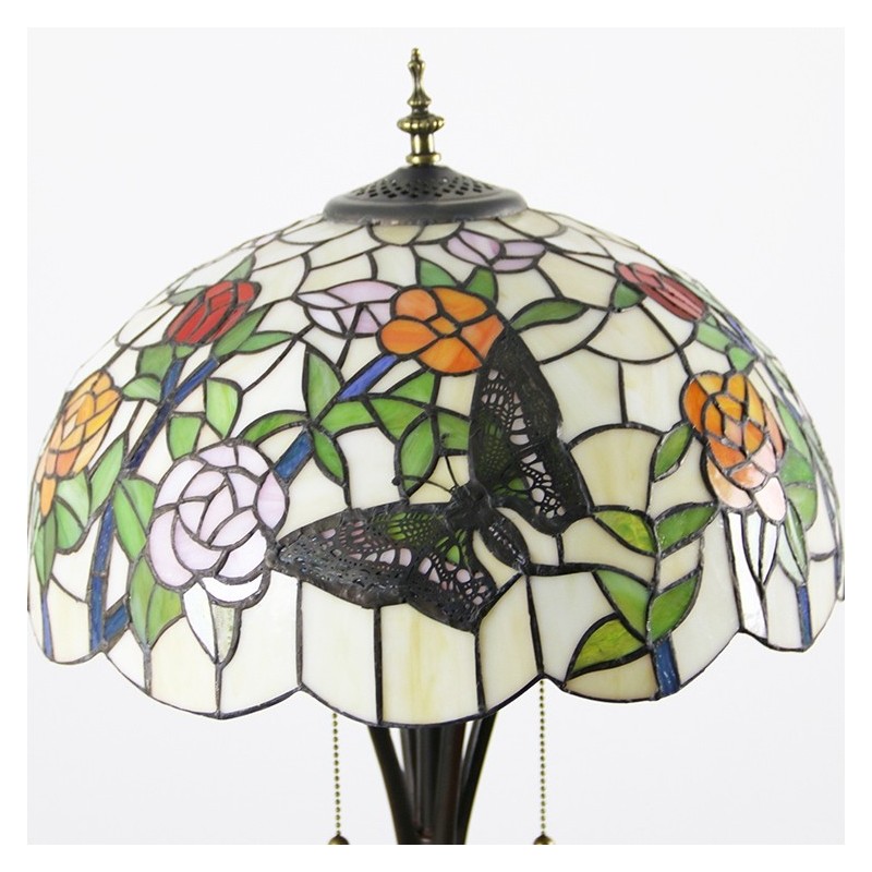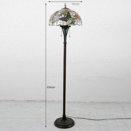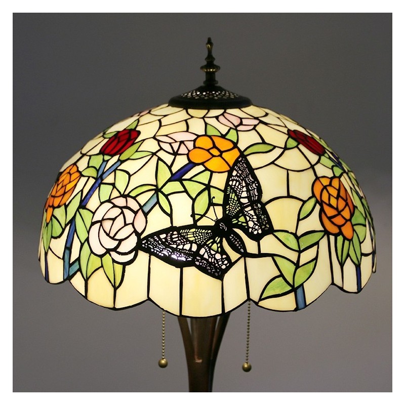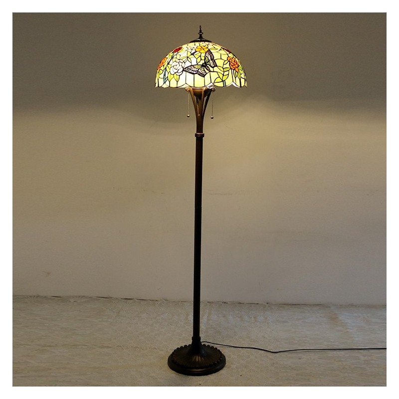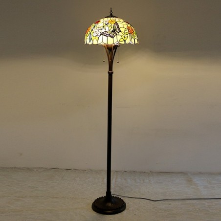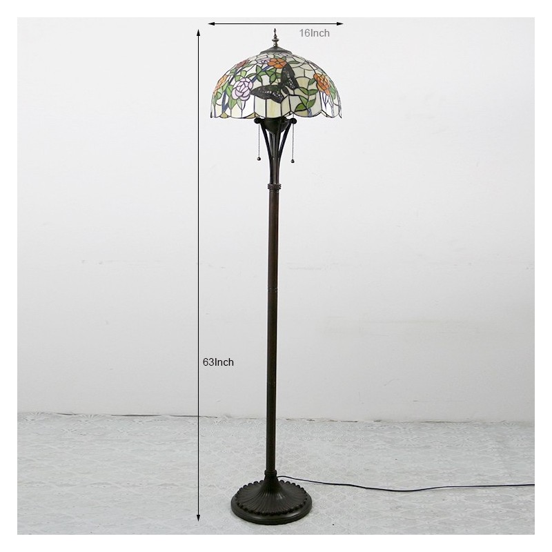 Butterfly Tiffany stila vitrāžas grīdas lampa ar 16 collu platu rokām darinātu lampas metāla pamatni